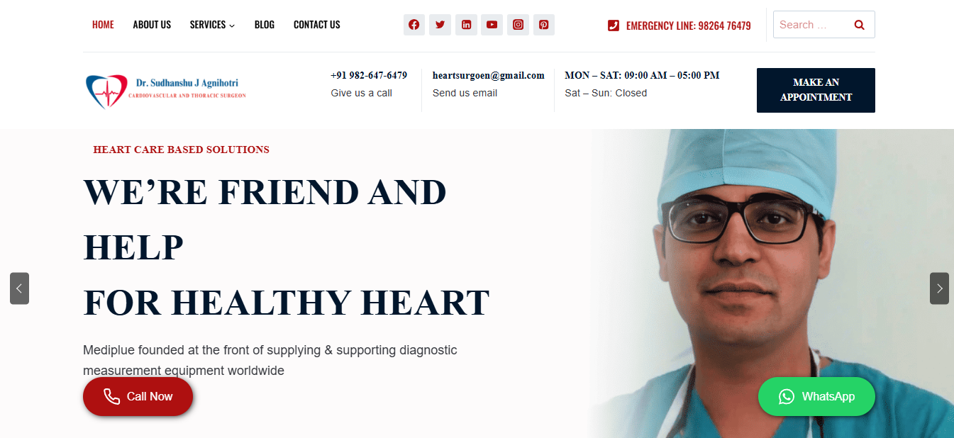 A professional website for Dr. Sudhanshu J. Agnihotri, a renowned cardiac surgeon based in Indore.
