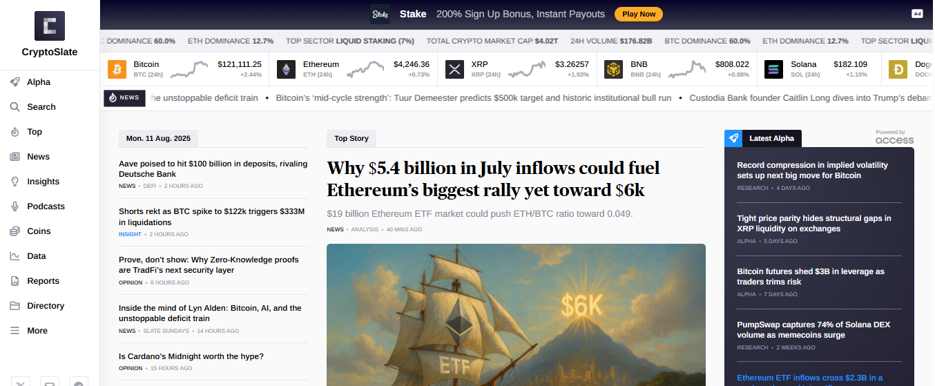 A comprehensive blockchain and crypto news platform providing project profiles, coin rankings, and market data,