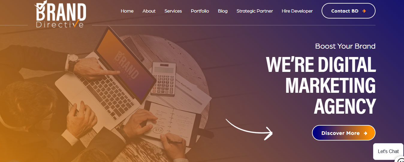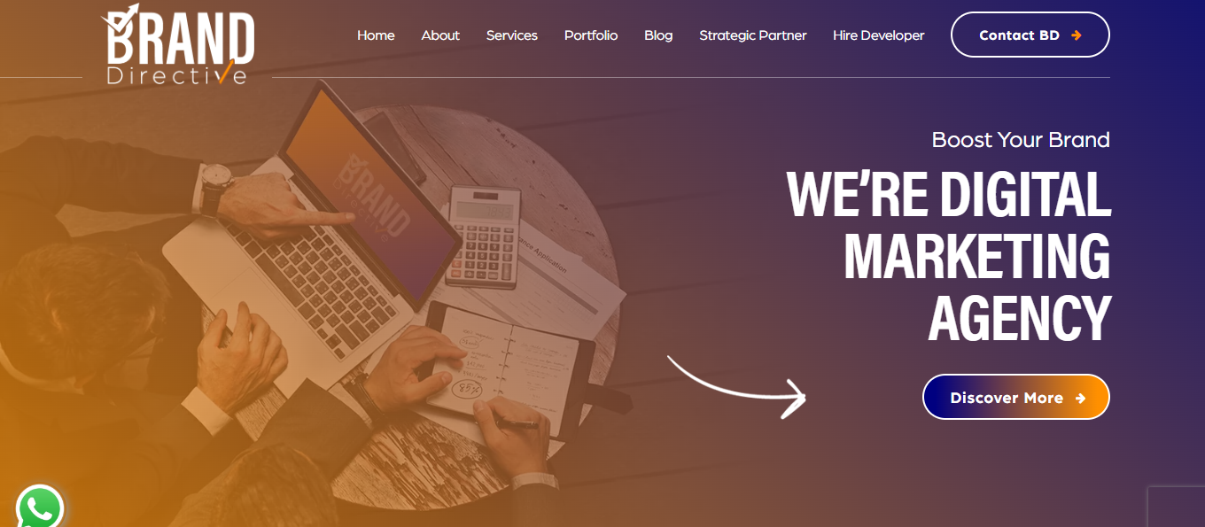 A website built on the DIVI theme, showcasing marketing and creative agency services, focusing on