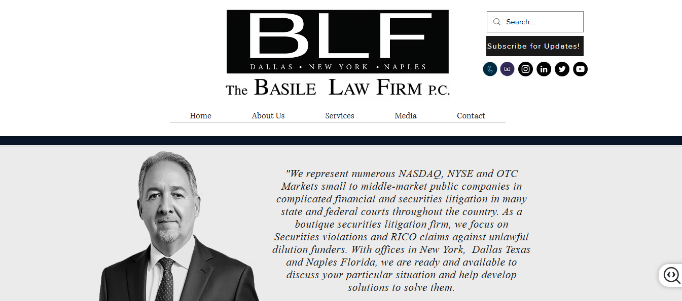 A law firm website offering legal services with strong emphasis on client outreach and marketing