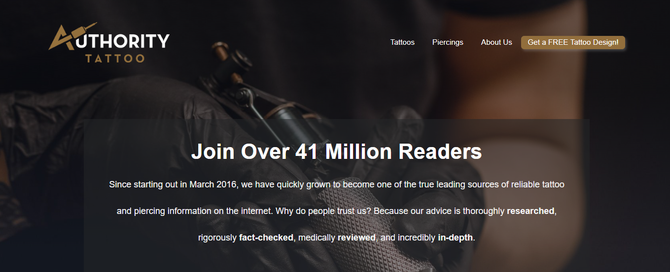 Tattoo art website which represents a niche of graphic design focused on custom artwork and