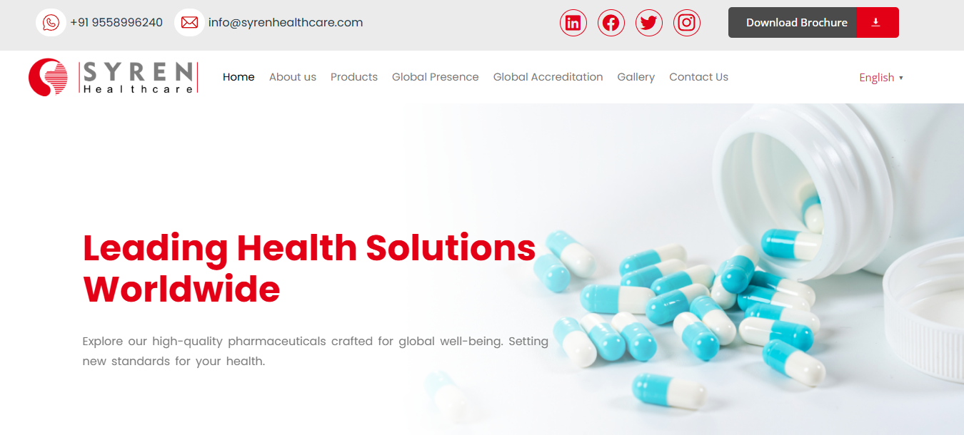 Nabros is a pharmaceutical manufacturing and distribution company. The website presents a detailed product catalog,