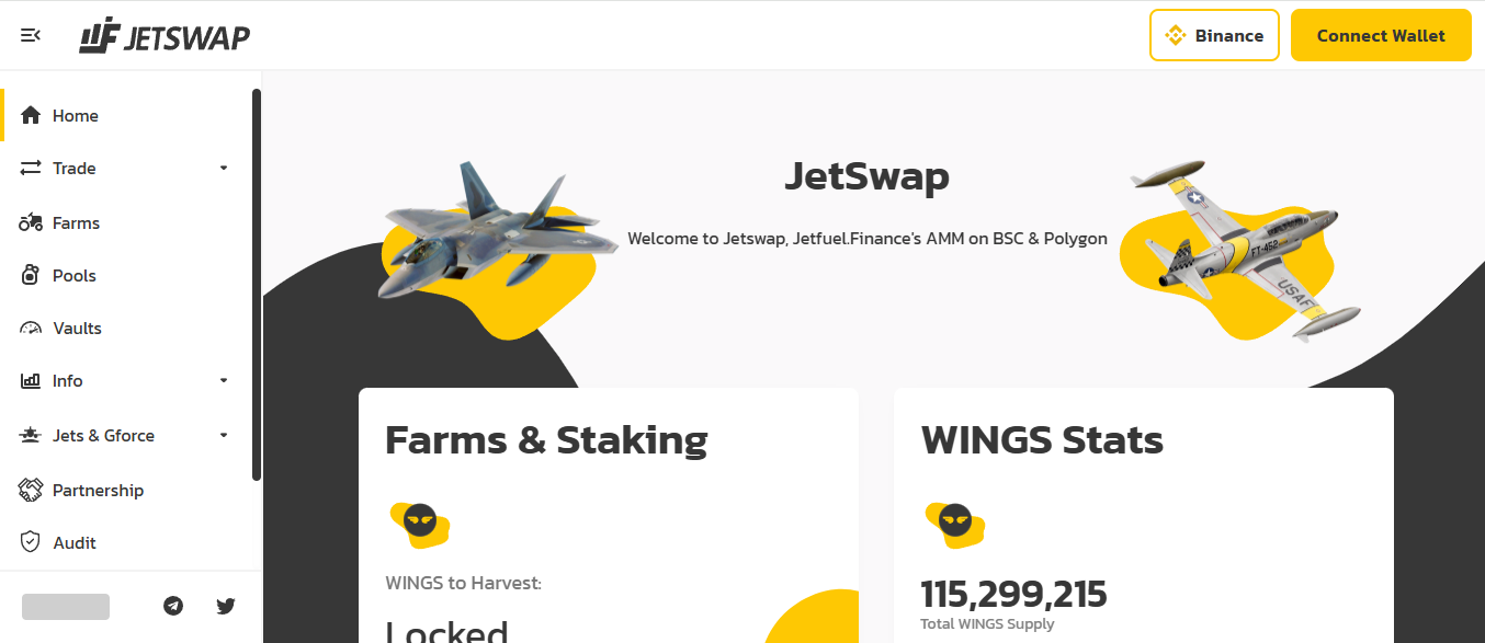 Jetswap is a multi-chain AMM and DeFi platform offering token swaps, yield farming, staking, and